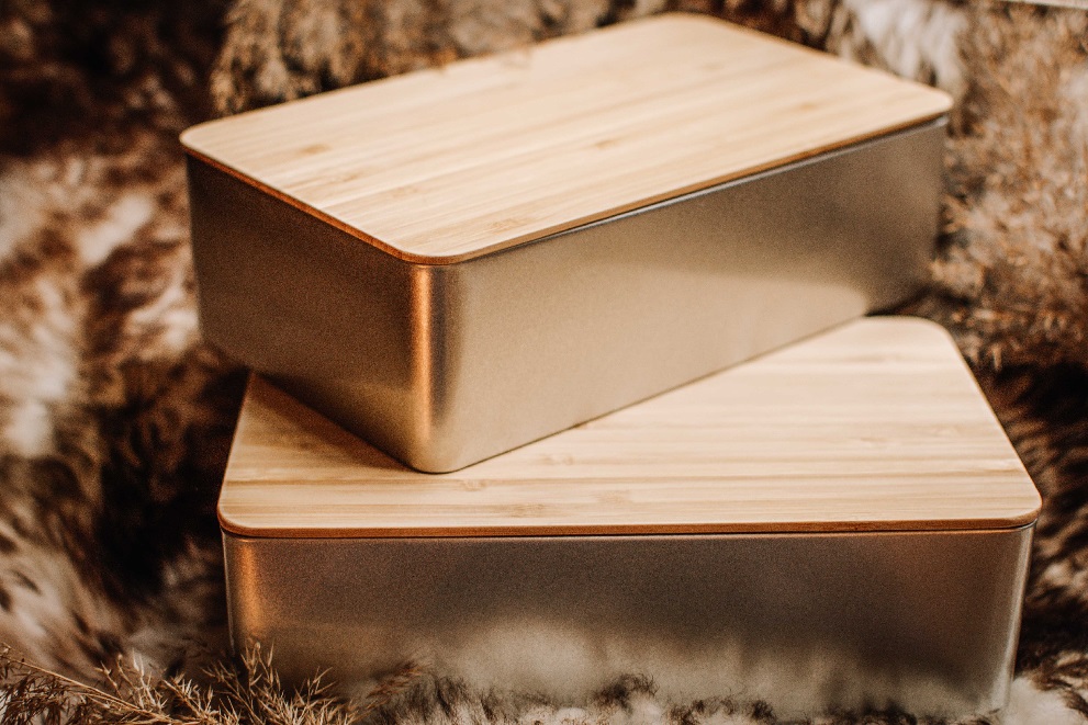 Die exquisite tindobo Dose ist eine nachhaltige Alternative zu Weg-Werf-Verpackungen und ist dank des modernen Deckels, der auch als Schneidebrett genutzt werden kann, ein echter Blickfang. Außerdem ist die Geschenkdose lebensmittelecht und kann somit als Vorrats- und Aufbewahrungsdose verwendet werden. So findet ein 750g Stollen in der Dose bequem Platz, was die tindobo Geschenkdose mit Bambusdeckel zu einer perfekten Stollendose macht.