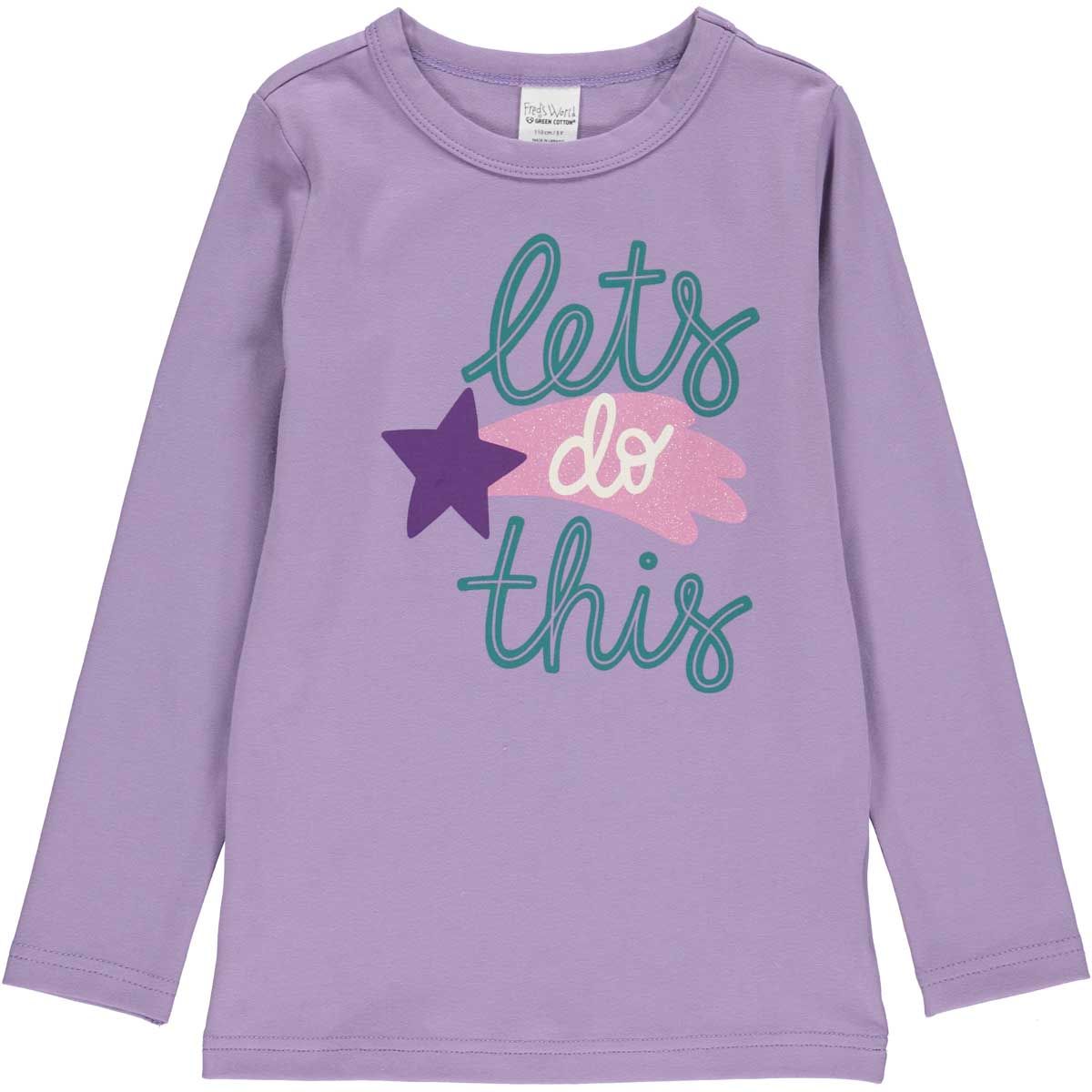 Langarmshirt in lila mit einem Sprüche-Druck.