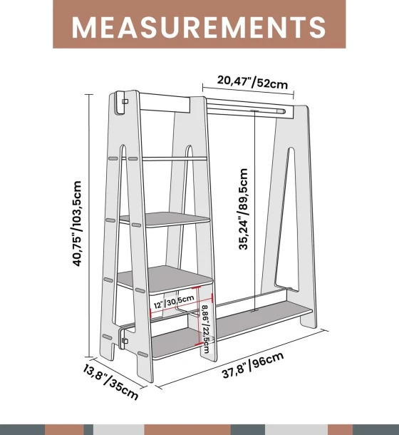 Die einfache Montage ohne Schrauben oder Werkzeuge macht es den Eltern leicht, den Kleiderständer schnell aufzubauen und bei Bedarf umzustellen. Das qualitative Design und die robuste Verarbeitung stellen sicher, dass der Kleiderständer den alltäglichen Anforderungen und dem Spielbedarf gerecht wird, während er gleichzeitig eine Belastbarkeit von bis zu 45 kg bietet.