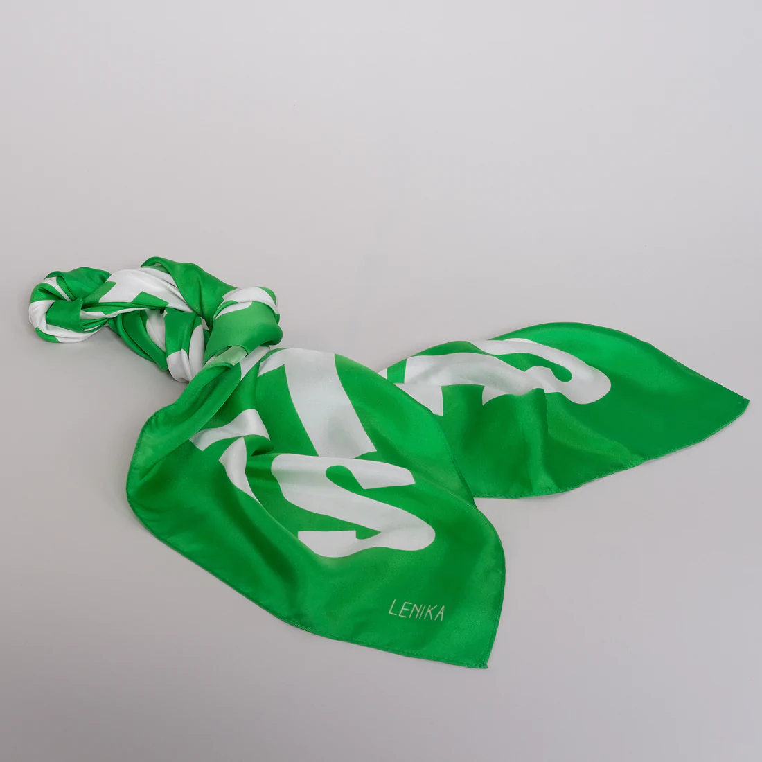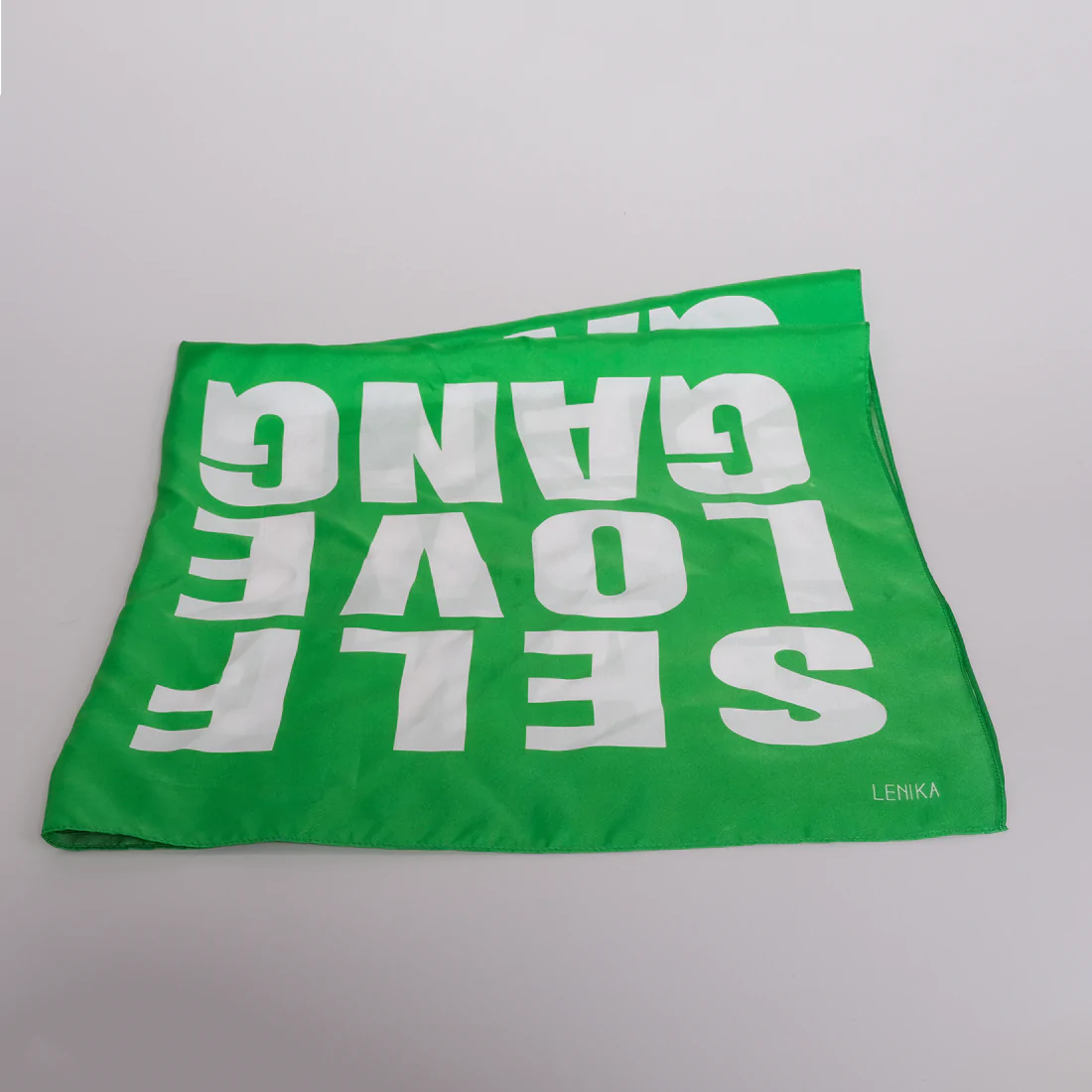 Knallgrünes Seidentuch “Selflovegang” aus oeko-tex®-zertifizierter Seide