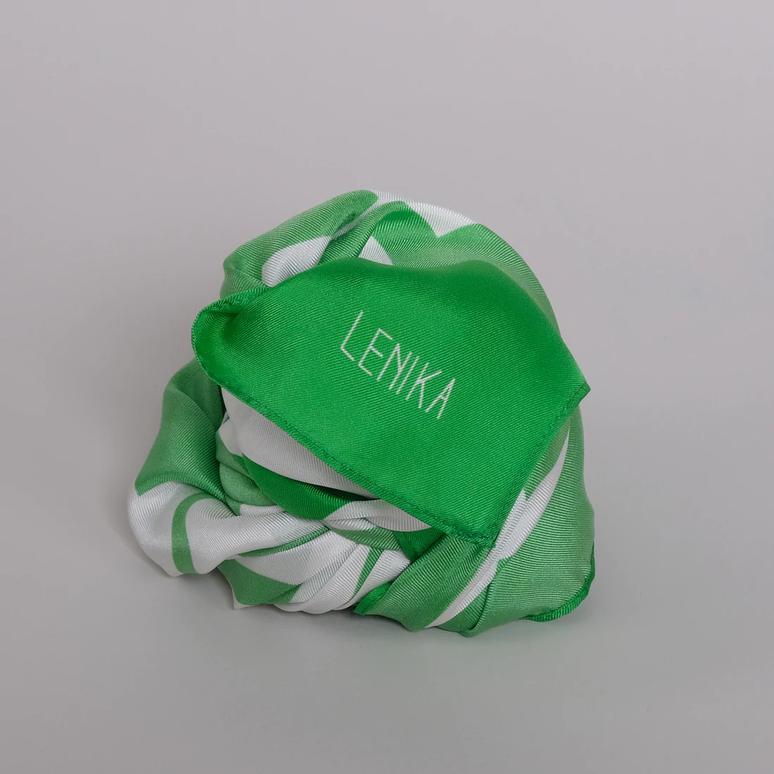 Lenika hat es sich zur Aufgabe gemacht den Seidenschal aus der falschen Ecke herauszulocken und dem ganzen einen fetten Trend-Stempel aufzutragen.