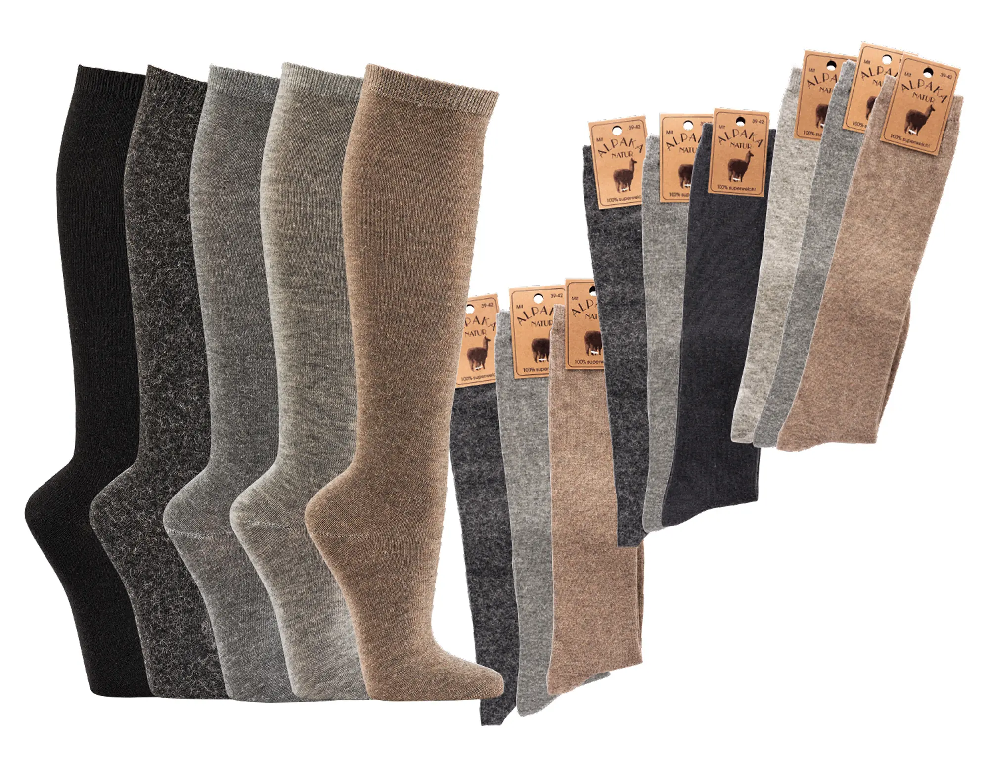 Sie erwerben Kniestrümpfe mit Alpakawolle, gut wärmend durch Wolle, gesundes Fußklima, auch bei Reitern sehr beliebt, superweiche Qualität