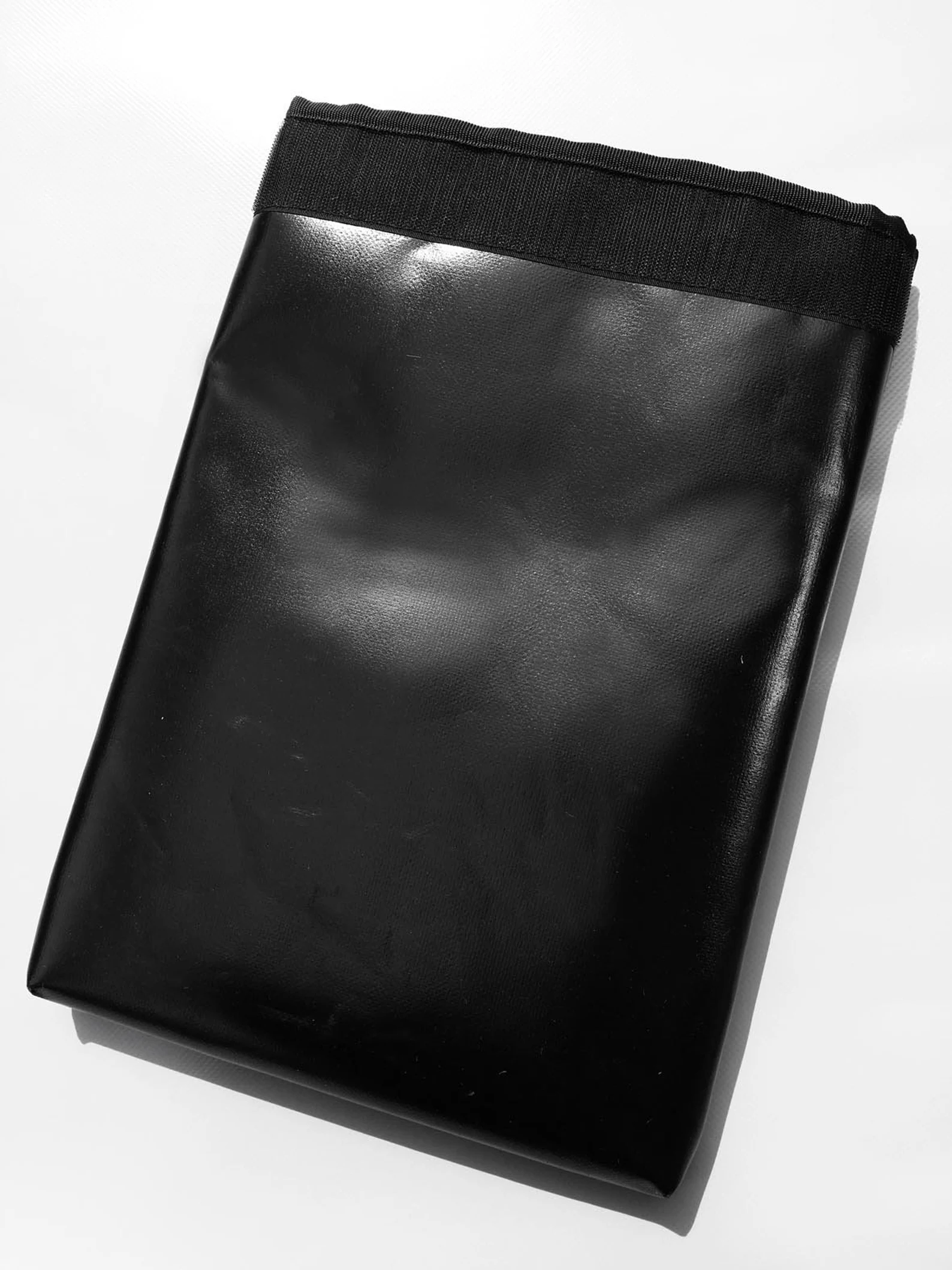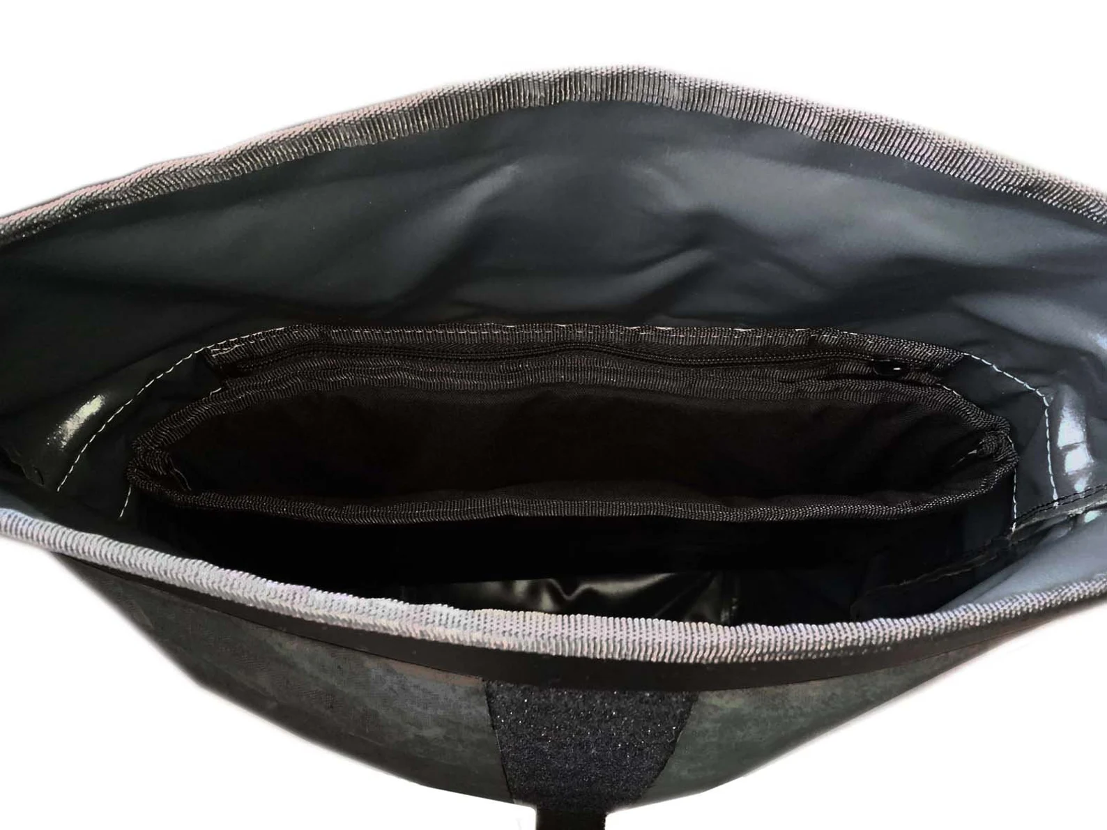 Das Laptopfach ist außen aus LKW-Plane, innen aus Cordura und gepolstert.