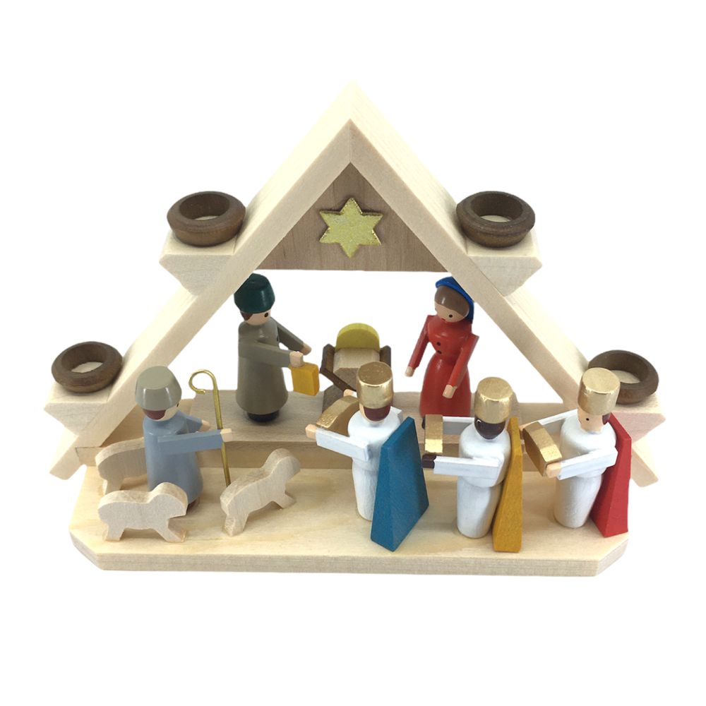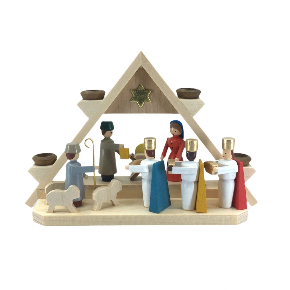 Dieser hübsche und zeitlose Mini-Lichtbogen – Krippe wird in traditioneller Handarbeit liebevoll von der Firma Volker & Heiko Flath gefertigt.