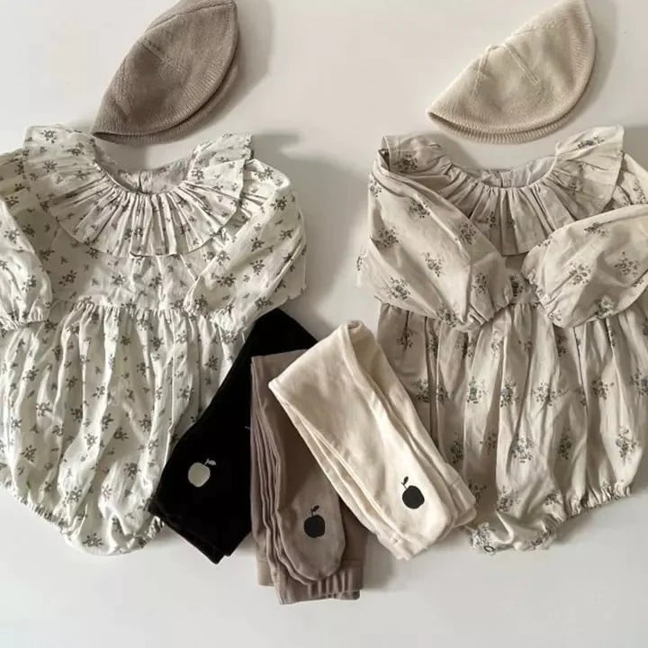 Dieser zuckersüße Bodysuit von Aosta in Naturtönen mit Olivenblüten Muster mit Bündchen. Wir finden diesen Vintage-inspirierte Blusenromper einfach traumhaft.