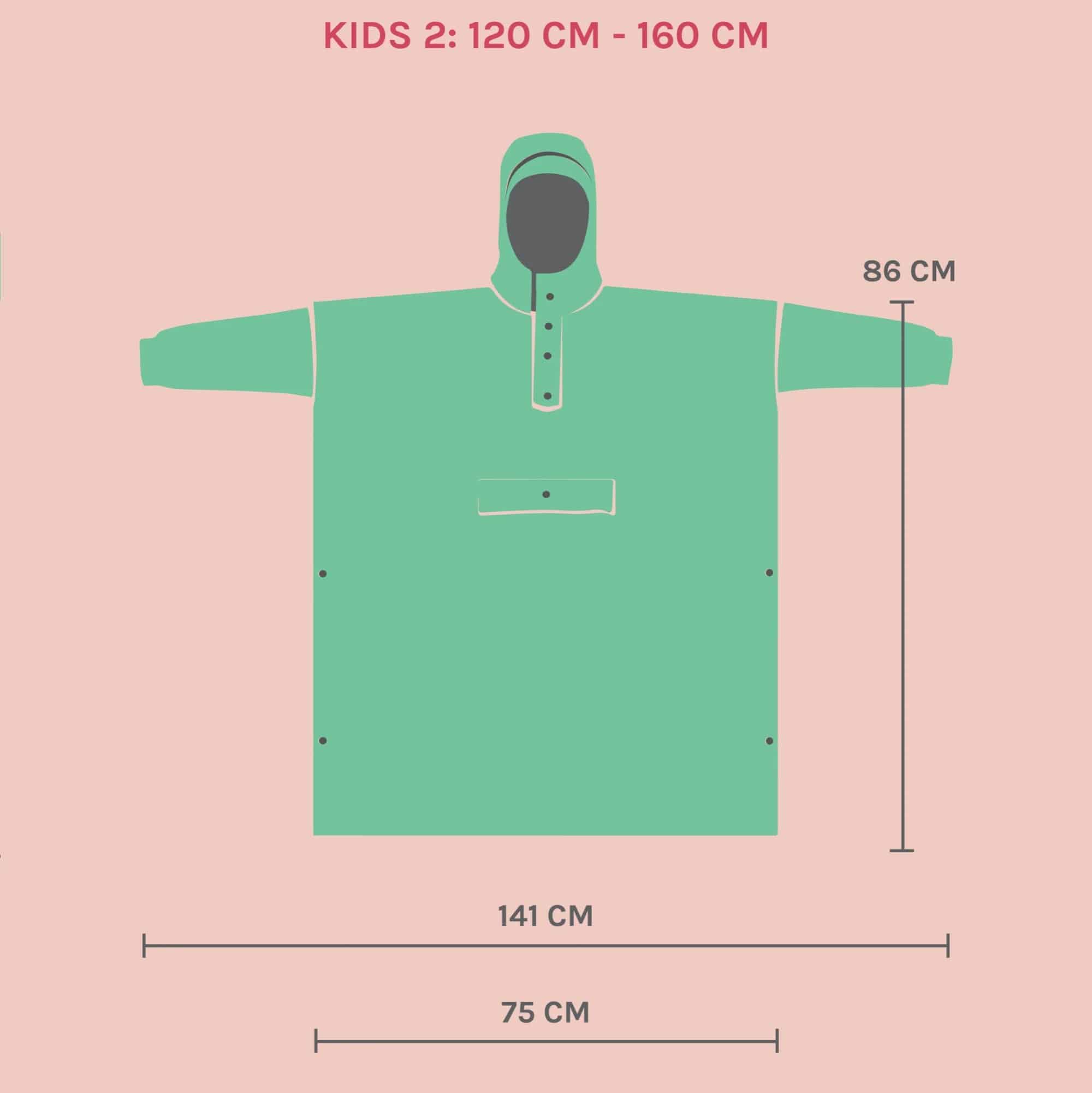 Der Regenponcho kommt zusammengefaltet in einer Tasche, in die dieser auch jederzeit verstaut werden kann, nimmt also fast keinen Platz in Deiner Handtasche oder dem Rucksack/Schulranzen des Kindes weg.