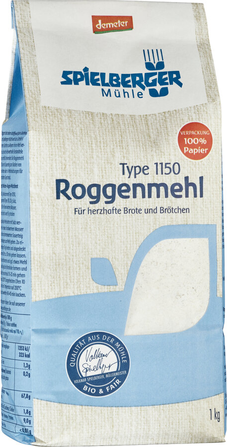 Für das Roggenmehl 1150 wird besten demeter-Roggen verwendet. In der Sielberger Mühle wird das Getreide in mehreren Schritten mit größter Sorgfalt und Fingerspitzengefühl zu diesem mittelhellen Mehl vermahlen, das noch viele wertvolle Bestandteile des Korns enthält. Roggen hat einen kräftigen, herzhaften Geschmack. Das mittelhelle Roggenmehl eignet es sich besonders für herzhafte Brote und Brötchen.
