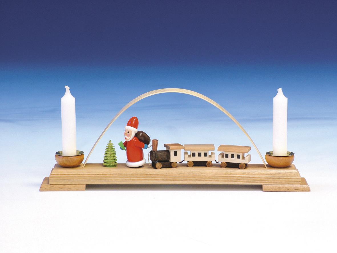 kleiner Schwibbogen für 2 Wachskerzen mit Weihnachtsmann und Eisenbahn