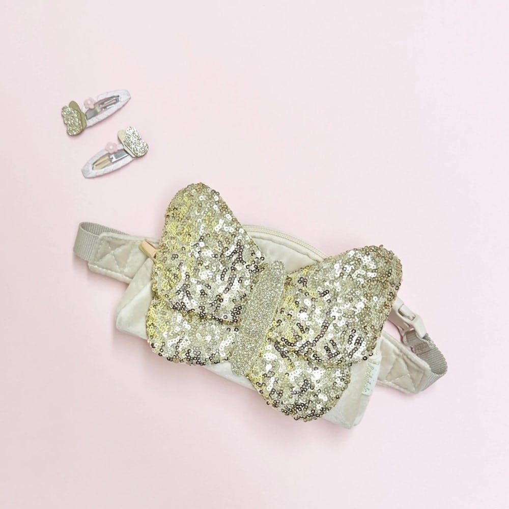 Flatter wie ein Schmetterling mit dieser wunderschönen, mit Pailletten verzierten Gürteltasche! Hergestellt aus weichem Samt in neutralen Farben und mit 3D-Schmetterlingsflügeln aus schimmerndem Paillettenstoff, ist dies die perfekte Tasche, um etwas Glanz zu verbreiten!