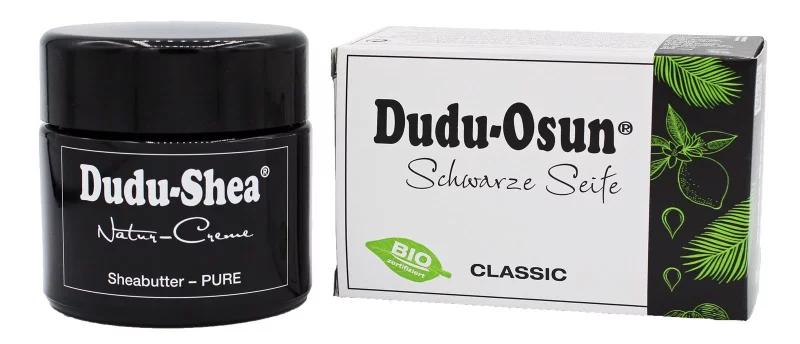 Bei uns im Spa Vivent Afrika Shop finden Sie Shea Butter und die afrikanische Seife Dudu Osun. Die schwarze Seife Dudu Osun ist die optimale Reinigung vor der Pflege mit der puren Sheabutter.