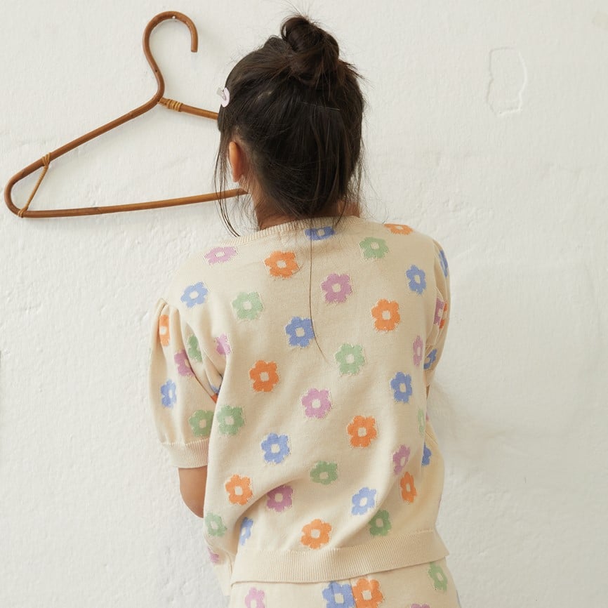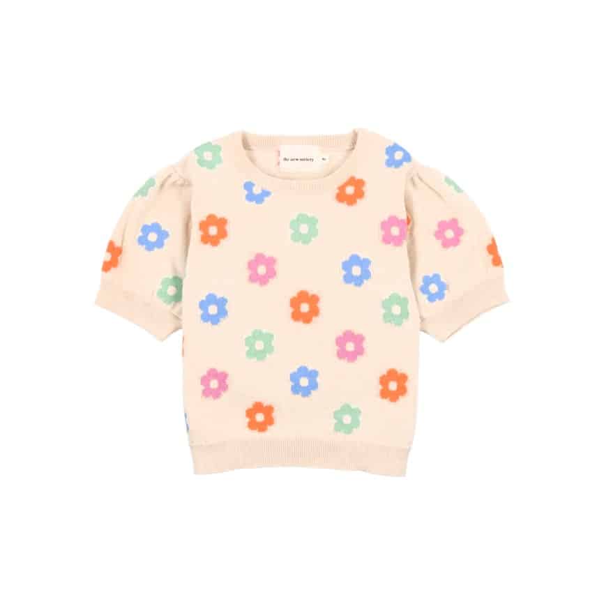 Cooler, süßer Pullover mit kurzen Armen und bunten Blumen.