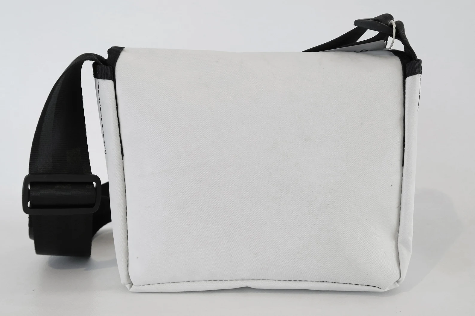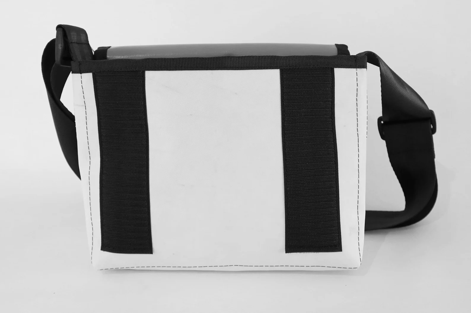 Die Tasche ist aus recyceltem Segel und das Innenleben ist aus neuwertiger LKW-Plane.