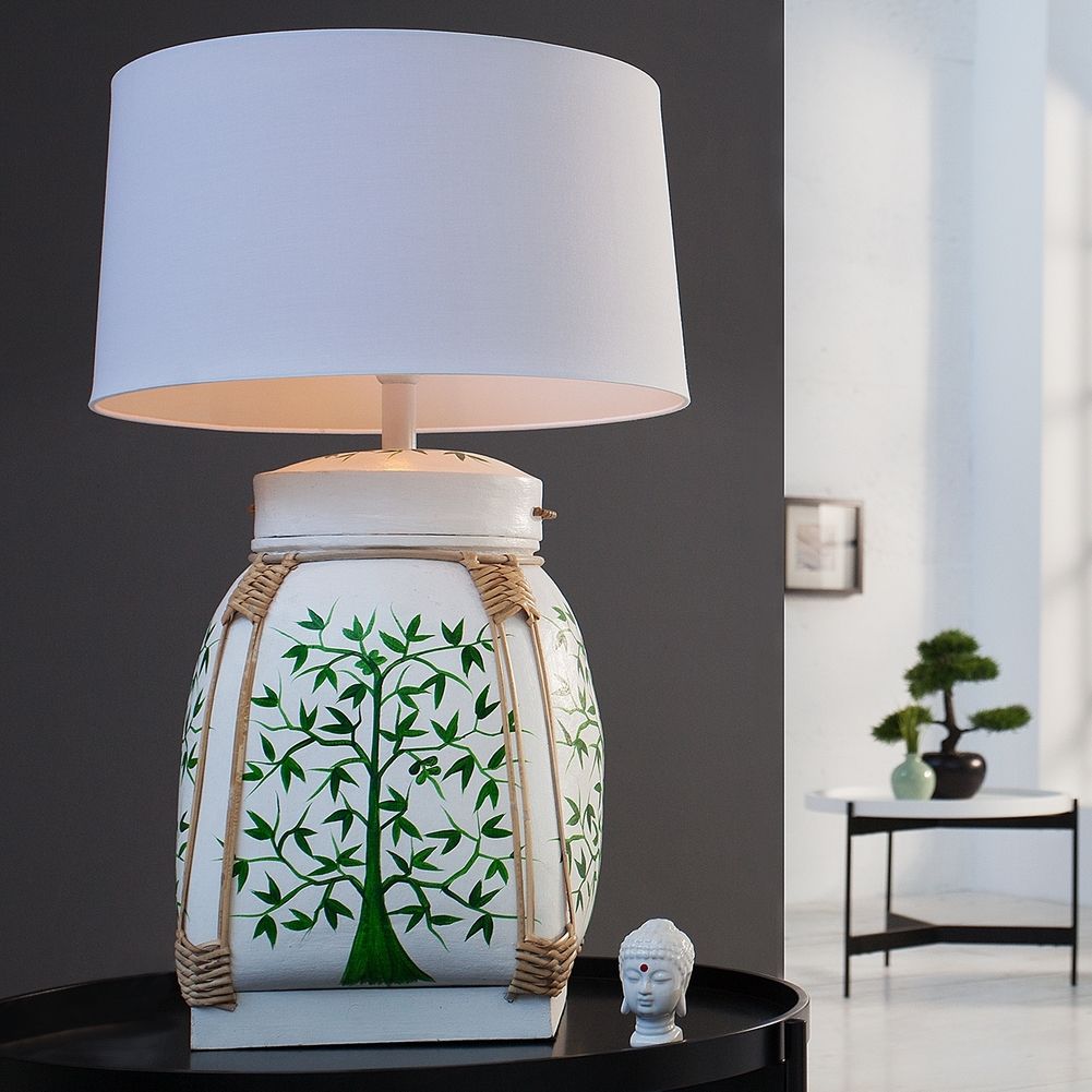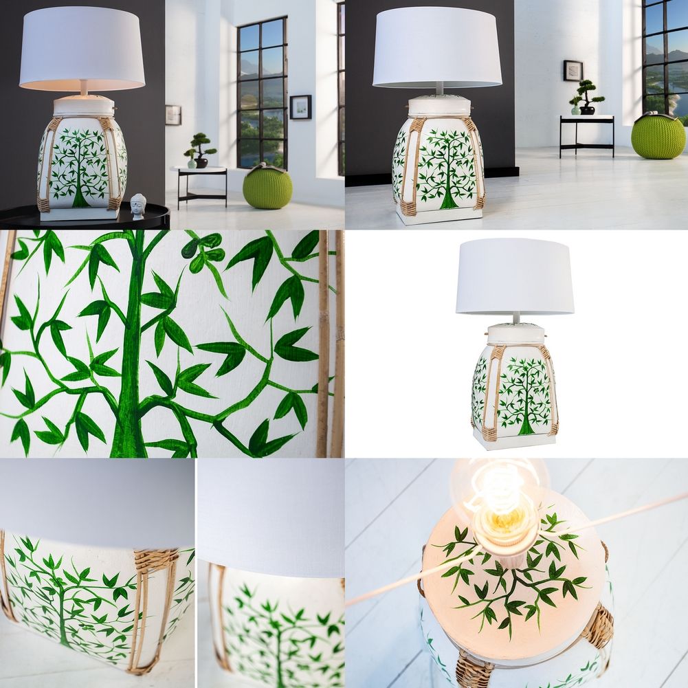Schreibe die erste Bewertung für „XL Tischlampe MING Weiß mit handbemaltem Baummotiv aus Bambusholz 75cm Höhe“